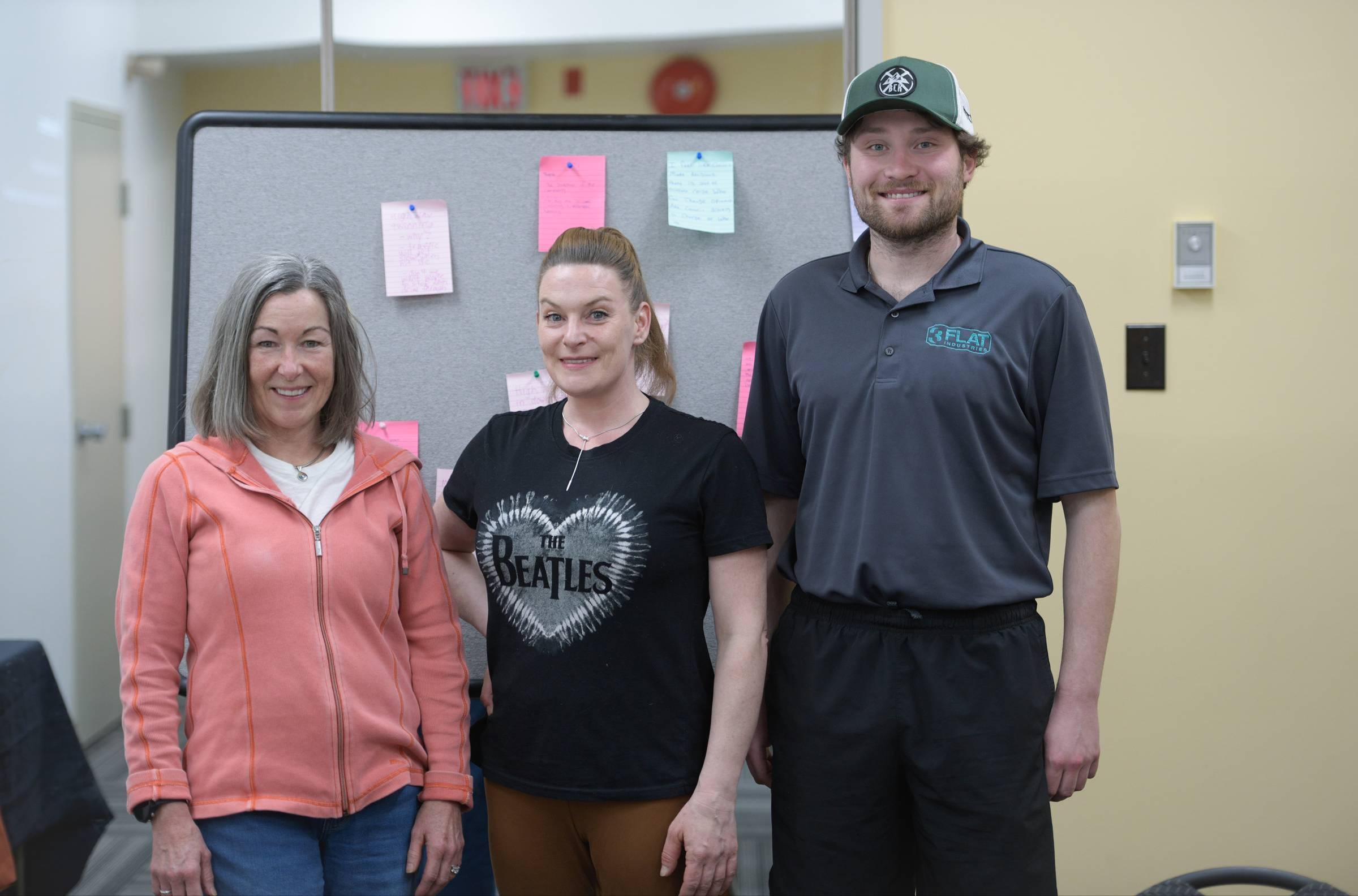 La responsable de l’engagement communautaire, Allison Capron (gauche), et les documentalistes de Crowsnest Pass, Shannin Maloney (centre) et Keiran Douglas (droite). Photo : Sarah B. Groot